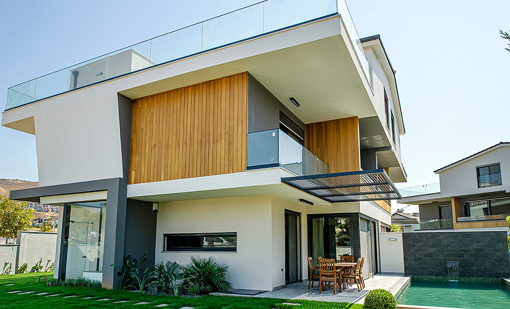 3.703 m2 alan üzerine kurulu ve etrafı yol ile çevrilidir. 5 adet ikiz villa tipinde toplam 10 adet 7+1+sauna(opsiyonlu) villadan oluşuyor. Etrafı yol ile çevrili olduğu için her villanın kendine ait bir girişi ve müstakil havuzu bulunmaktadır. Bahçe içerisinde, net kapalı alanı 308,05 m2, açık alanı 108,43 m2 toplam 416,48 m2 net, 458 m2 bürüt alana sahiptir. Aileniz ve sevdiklerinizle birlikte iyi zamanlar geçireceğiniz konforlu, ferah, güvenli ve lüksün harmanlandığı size özel villalar.