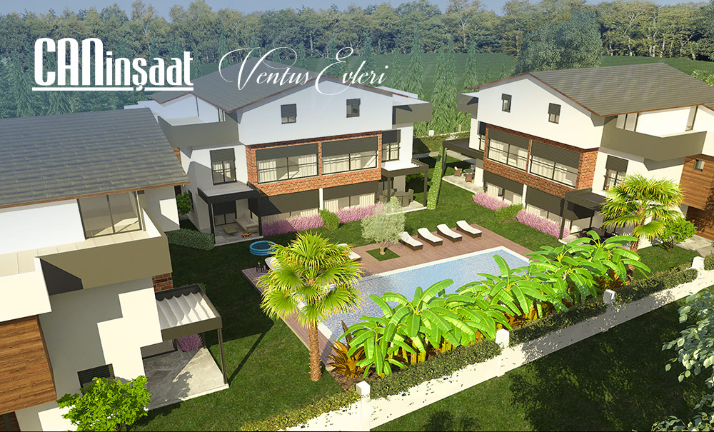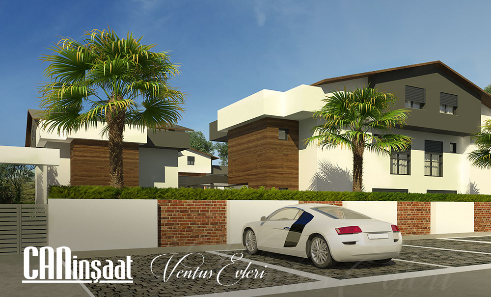 1968 m2 alan üzerine kurulu “Ventus Evleri” 190 m2 kapalı alan, 45 m2 teras toplam 235 m2 olmak üzere 4+1 triplex 3 adet ikiz toplam 6 adet villadan oluşuyor;